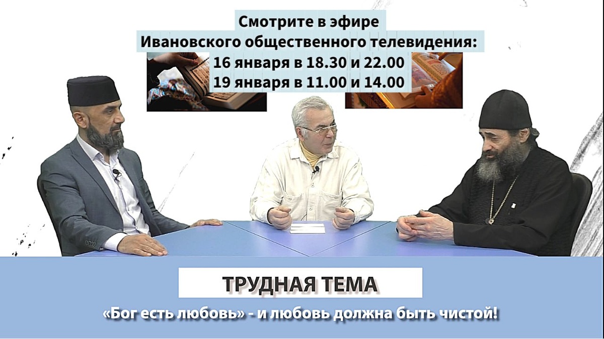 ?» Знаменитый вопрос, который заставляет спрятать похабный журнал. А что заставляет задуматься о внебрачных связях? Новый выпуск «Трудной темы» — это жёсткий, прямой и очень жизненный разговор о том, что мы маскируем словом «любовь». ▪️ Сожительство — это «проба» или уже грех? ▪️ Почему нельзя найти «порядочную» жену? ▪️ При чём здесь СПИД и венерические болезни? ▪️ Бог есть любовь. Какая? Смотрите. Спорьте. Выбирайте. В эфире Ивановского общественного телевидения: 16 января в 18.30 и 22.00 19 января в 11.00 и 14.00 #ТруднаяТема #ЛюбовьИлиСтрасть #ИвановскоеТВ #ЧестноОГлавном