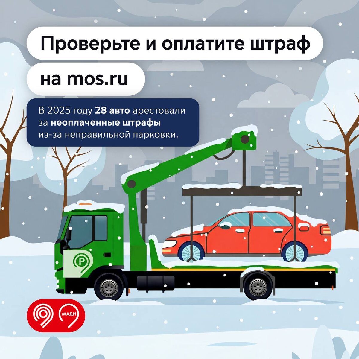 Итоги работы МАДИ и ФССП в Москве в 2025 году. В прошлом году судебные приставы и инспекторы МАДИ арестовали 28 автомобилей. Владельцы этих машин: 🔹 Парковались под запрещающими знаками и на газонах. 🔹 Накопили задолженностей по штрафам на общую сумму более 6 млн руб. 🔹 5 водителей погасили долг на месте и избежали эвакуации. 🔹 Остальные вернут свои авто только после полного погашения задолженности. Если этого не сделать, машины могут продать с аукциона в счет оплаты долга. Проверяйте наличие штрафов и сразу оплачивайте их на официальном сайте mos.ru. Для этого зайдите в раздел «Проверка и оплата штрафов». Призываем водителей помнить о безопасности и правилах дорожного движения и оставлять авто только в разрешенных местах. Если владельцу машины пришел штраф, его необходимо оплатить в течение 60 дней.