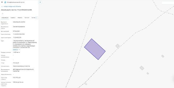 Название: право заключения договора аренды земельного участка из земель населенных пунктов с кадастровым номером 71:23:050209:2358 площадью