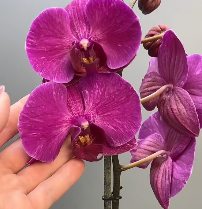 Привет! Вы на канале «Орха Лаборатория». Сегодня я хочу показать вам новую орхидею. На днях я ходила в магазин за хлебом и пришла домой не с пустыми руками, а вот с этой красивой орхидеей. Она чем-то напоминает сорт «Шоколад», но, к сожалению, на горшке сорт не был указан. Как и все новые орхидеи, я протираю её листья зелёным мылом, а старый держатель для цветоносов заменяю на новый. Очень часто в сетевых магазинах орхидеи беспощадно заливают, поэтому, принеся такую орхидею домой, нужно как можно быстрее просушить субстрат, чтобы корни не начали гнить. Сейчас я поделюсь с вами своим секретом быстрой просушки. Сначала делаем дополнительное отверстие в горшке, аккуратно, не задевая корни. Берём ёмкость большего диаметра и кошачий наполнитель. Насыпаем немного на дно, ставим горшок и засыпаем вокруг. Наполнитель очень быстро впитает всю лишнюю влагу. Если было полезным, ставь лайк и подписывайся на Орхолабораторию и заходи,в наш 👉 Телеграм Там есть уютный чат-болталка и отдельный чат