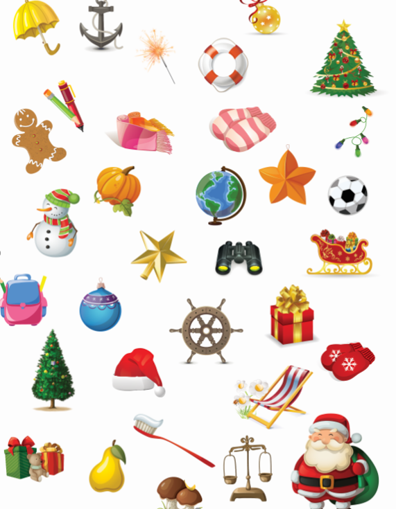 Можно распечатывать готовые изображения с различных детских сайтов, а можно взять реальные предметы, разложить на столе и попросить малыша выбрать те, что относятся к зимнему времени года. Например, предметы одежды : варежки, шарф; ёлочные игрушки, снежколеп, ватный дед Мороз и другие. Но среди них должны быть и предметы, не относящиеся к зиме, например: панама, рыбки для игры в бассейне, ласты. То, что есть под рукой.