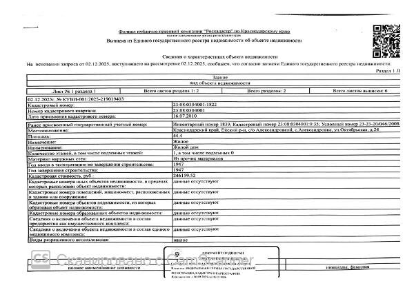 Е. Земельный участок (для индивидуального жилищного строительства), площадь 770+/-19 кв.м., кадастровый номер 23:08:0304001:787, жилой дом, площадь 44,4 кв.м., кадастровый номер 23:08:0304001:1822. Адрес: Краснодарский край, Ейский район, с. Александровка, ул. Октябрьская, 24. Начальная цена 960 000 руб., задаток 960 руб., шаг аукциона 9 600 руб., ув. 1889 Канал: Госземля Краснодарский край Область: край Краснодарский Ейский район Район: с. Александровка Населенный пункт: ул. Октябрьская, 24 Локация: Смотреть на карте ВРИ: Для индивидуального жилищного строительства Кадастровый номер: 23:08:0304001:787 | 23:08:0304001:1822 Кадастровая стоимость: - Вид сделки: Продажа Площадь: 770 м² Начальная цена: 960000.00 руб. Дата завершения: 09.02.2026 Подробнее: ГИС ТОРГИ #госземля #земляотгосударства #земля #земельныйучасток #земельныеторги #торги #аукцион #продажаземли #продажа #краснодарскийкрай