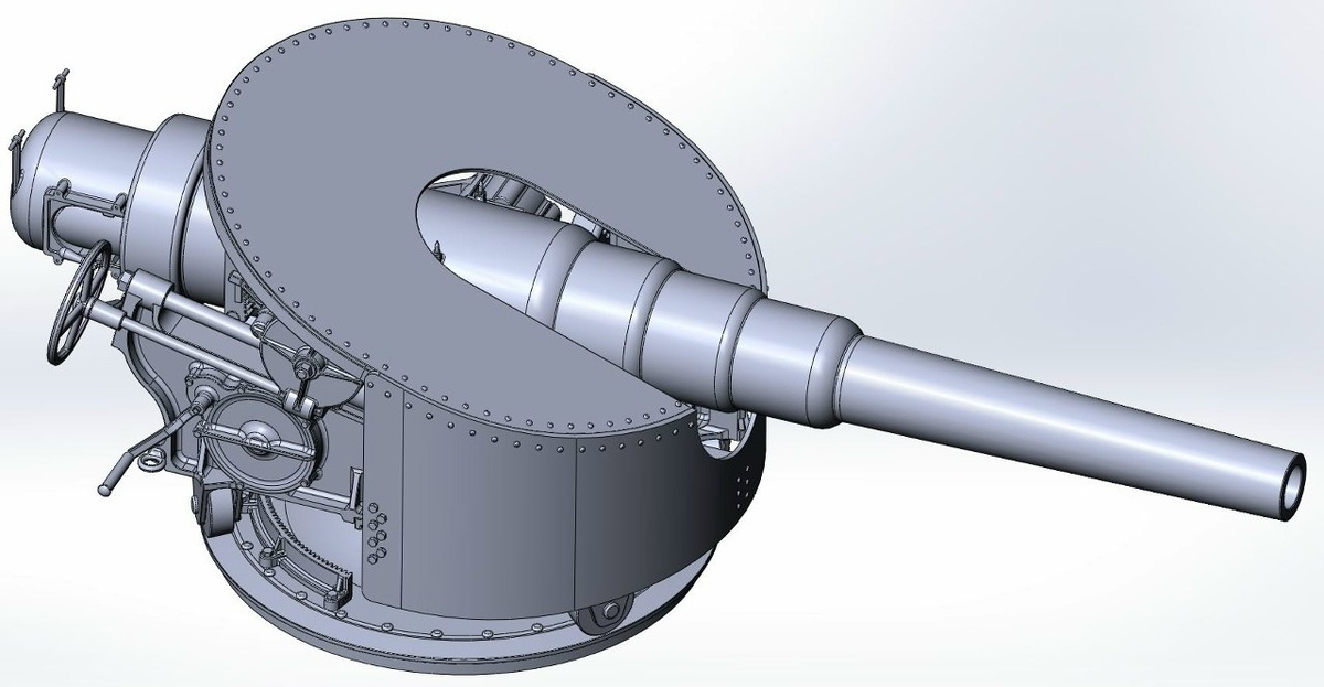 Новосибирская Scale_3D выпустит на 3D-принтере модель корабельного 203-мм орудия с длиной ствола 30 калибров на центральном штыре Вавассера в масштабе 1/72.