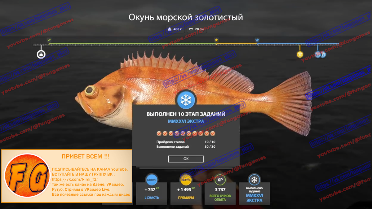 Экстра задание 10-3. Рыбачил около трех часов вечером и около двух часов утром. Норвежский шел очень хорошо, клювач попадался эпизодически, дольше всех ждал золотистого. Не ставьте креветки, их хватает различная рыба еще до дна и шанс поймать окуня становиться меньше. Главное довести приманку до дна и начать пилкинг)) Всем удачного прохождения этого задания.