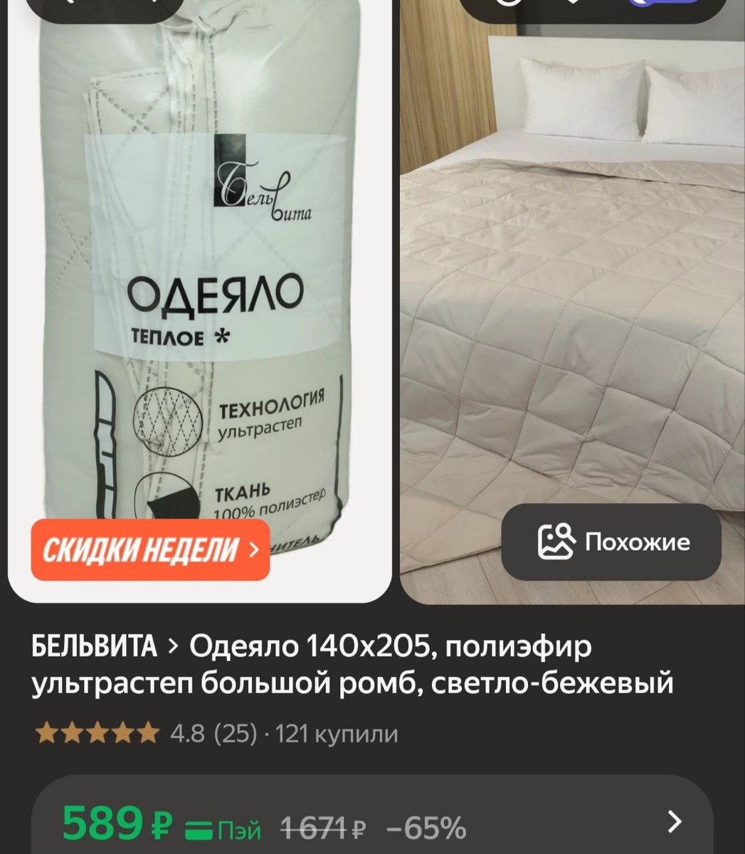 💻Одеяло 140х205, полиэфир ультрастеп большой ромб, светло-бежевый - 589р (я.пэй)