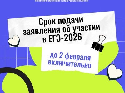 В этом году срок подачи заявления на участие в ЕГЭ-2026 продлевается на один день, поскольку 1 февраля в 2026 году — воскресенье. Крайний срок подачи — до 2 февраля включительно, сообщает Минобразования и спорта Карелии. Расписание ЕГЭ-2026:досрочный этап: 20 марта – 20 апреля;