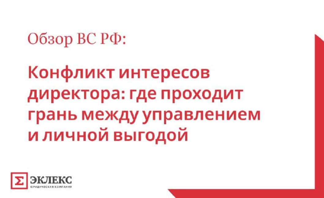 Продолжаем освещение позиции ВС в новом обзоре: если личная выгода руководителя вступает в противоречие с интересами компании, возникает презумпция его недобросовестности.