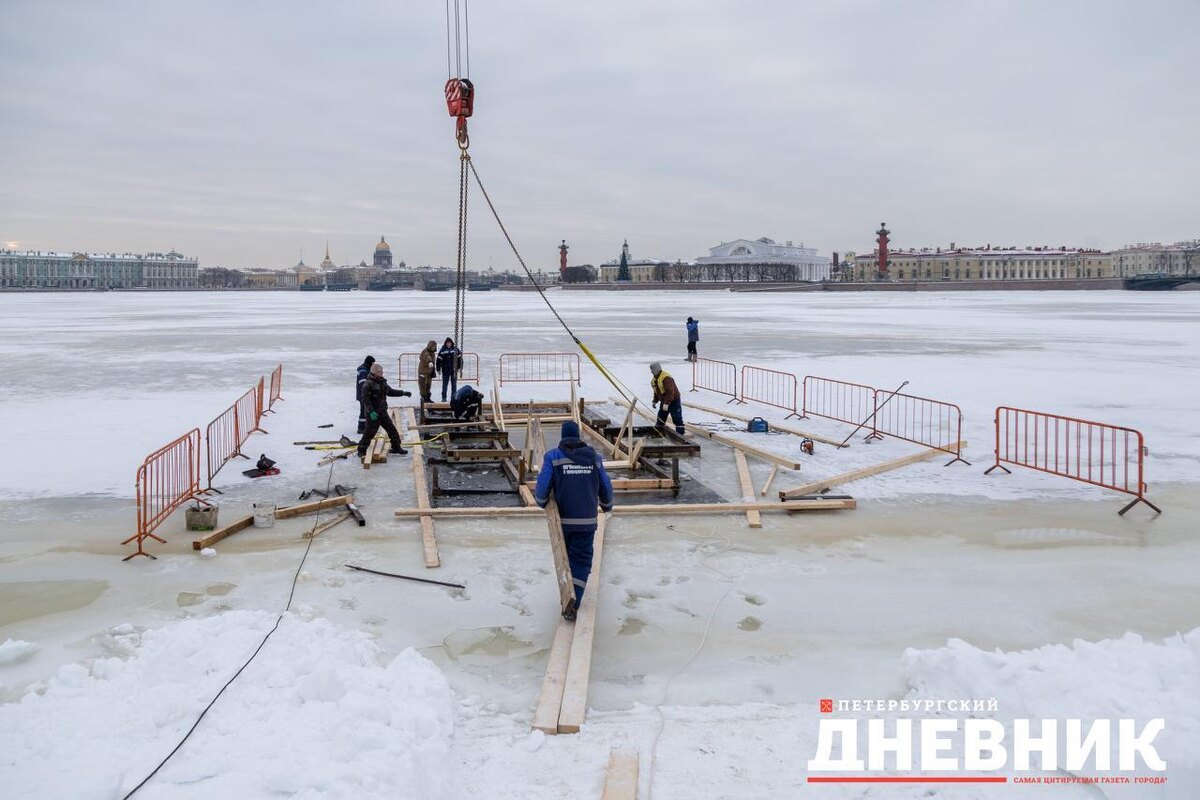 В Северной столице у Петропавловской крепости ведут работу по оборудованию главной городской купели. Фотокорреспондент «Петербургского дневника» запечатлел процесс. Купель будет доступна с 13:00 до 22:00 19 января. Напомним, ранее мы писали о том, что в Петербурге подготовят 17 купелей к 19 января, когда прихожане Русской православной церкви отметят один из важных христианских праздников – Крещение, или Богоявление.
