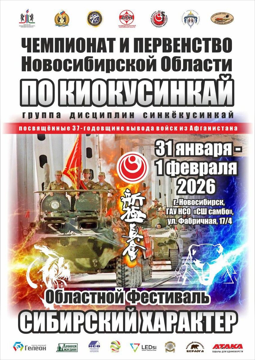 по адресу: г. Новосибирск, ул. Фабричная, 17/4, ГАУ НСО «СШ самбо» 🥋 Состоятся Соревнования Чемпионат и Первенство Новосибирской области по киокусинкай, Фестиваль «СИБИРСКИЙ ХАРАКТЕР», посвящённый 37-годовщине вывода войск из Афганистана (дисциплина Синкёкусинкай) 👊👊
