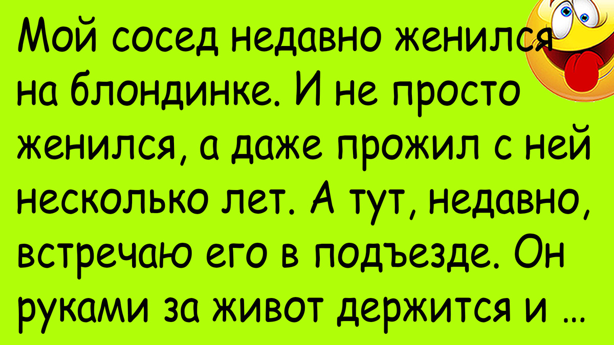 Некоторые блондинки обладают уникальной способностью развеселить людей так, как не сможет и клоун в цирке. У меня у соседа жена – блондинка. Он мне про неё столько всяких историй понарассказывал, что я теперь вообще ко всем блондинкам отношусь немного настороженно. Он с ней уже несколько лет живет, и она постоянно ему сюрпризы преподносит. Вот и недавно, встретил меня в подъезде. Стоит и от хохота уже за живот держится. Я спрашиваю: - Что случилось? Он, еле выговаривая слова из-за смеха: - Да, что, что? Опять моя блондинка учудила. Я спрашиваю: - Подожди, а что можно на кухне-то учудить? Там вообще облажаться нереально. Только если соль с сахаром перепутать. Сосед: - Ооо! Соль с сахаром мы уже проходили. Сейчас еще веселее было. Пошли покажу. Заводит меня к себе в квартиру, а там его жена на кухне стоит с недоуменным взглядом. Сосед ржет стоит и слова вымолвить не может. Я у его жены спрашиваю: - Светка, ну может ты мне расскажешь, что у вас случилось? Та, с непонимающим взглядом: - Да