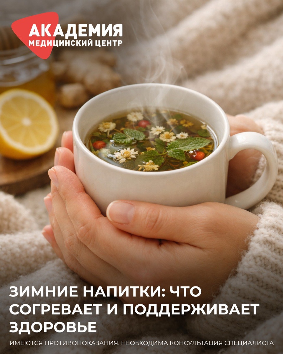 Зимой организму особенно важно сохранять тепло, поддерживать иммунитет и не перегружать желудок. Правильно подобранные напитки могут в этом помочь. ☕ Тёплая вода Начинайте утро со стакана тёплой воды — она мягко запускает обмен веществ и помогает пищеварению. 🍋 Чай с лимоном и мёдом Источник витамина C и натуральной поддержки иммунитета. Главное — добавлять мёд в тёплый, а не горячий напиток. 🫚 Имбирный напиток Улучшает кровообращение, помогает согреться и может снизить риск простуды. Подходит при первых признаках недомогания. 🌿 Травяные чаи Ромашка, шиповник, липа, чабрец — поддерживают иммунитет, помогают расслабиться и улучшают сон. 🥛 Тёплое молоко Снимает напряжение, помогает быстрее уснуть и полезно в вечернее время. ⚠️ На что стоит обратить внимание – Сладкие сиропы и избыточный сахар снижают пользу напитков – Алкоголь не согревает, а увеличивает риск переохлаждения – Слишком горячие напитки могут раздражать слизистую Забота о здоровье начинается с простых ежедневных п