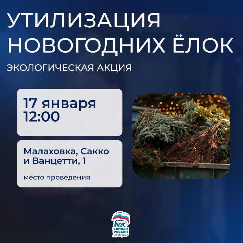 Приглашаем вас принять участие в акции и сдать свои живые ели на переработку. Приносите деревья ⭐️17 января в 12:00 📍Малаховка, улица Сакко и Ванцетти, дом 1 Давайте беречь планету вместе 💚 #ЕдинаяРоссия #ЕРЛюберцы #Подмосковье #Люберцы #ЕР50 #ЧистаяСтрана 👍 Единая Россия Люберцы