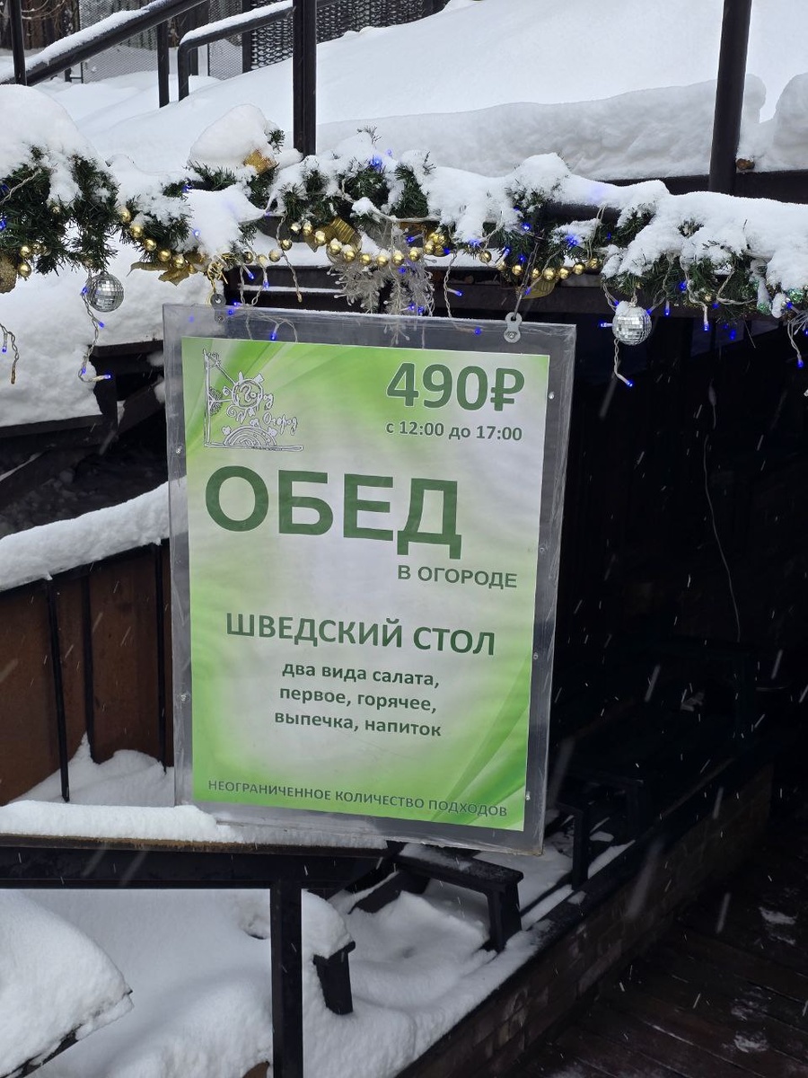 Ну и лайфхак, где недорого поесть в тех краях. Справа от входа в Аптекарский огород есть кафе "Огород". Там шведский стол за 490 рублей. Можно неограниченно наливать супы и накладывать салаты😀
