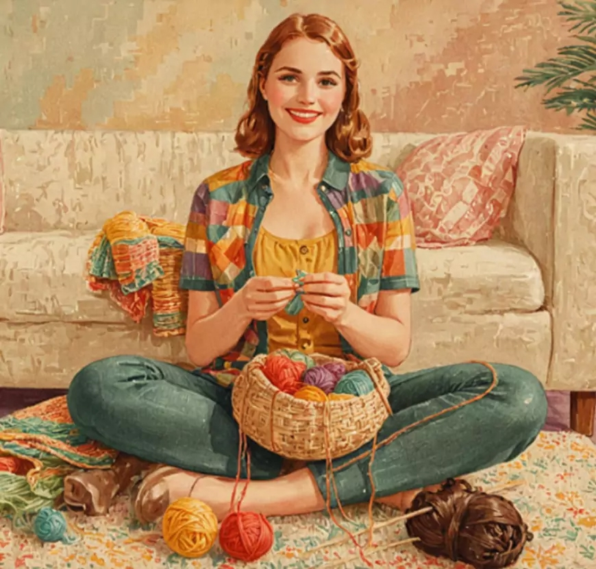 — Хотела бы иметь такую гибкость, чтобы так сидеть в позе лотоса!)) Почему-то часто так изображают вязальщицу? В кресле удобнее.