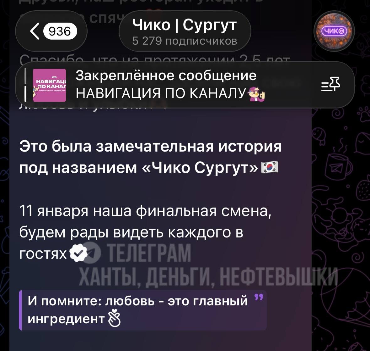Это было первое заведение корейского стрит-фуда в ХМАО, которое открылось в 2023 году. Причина закрытия — данный проект больше не интересен, сообщила управляющая рестораном Елена Киргизова. «Мы закрыли ресторан насовсем по совокупности причин. Если и будет перезапуск, то в другом направлении. Для себя поняли, что данный проект больше не интересен и делаем упор на другие более масштабные проекты, которые требуют сил и ресурсов». Подписаться | Прислать новость | Дать «буст» | Мы в MAX