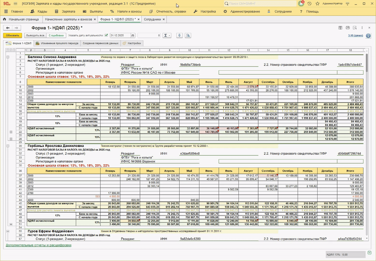 Развитие обработки Форма 1-НДФЛ для проверки и ИСПРАВЛЕНИЯ подоходного налога