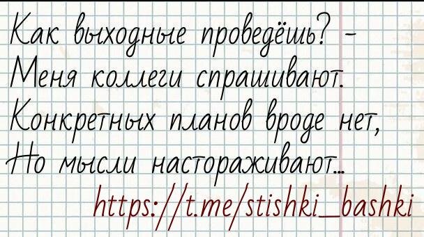 #пятница #неделя #планынавыходной #стишкиизбашки Стишок каждый день для настроения @stishki_bashki 📹 - видеостишки тут 👈 🙊 - а тут можно комментировать 👈 Поделитесь стишком с друзьями