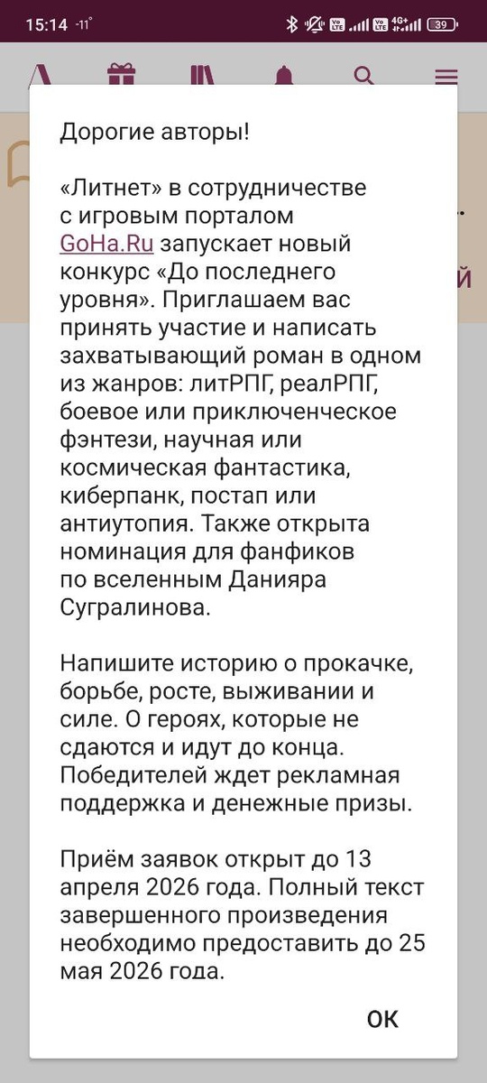 Особенно занятно выглядит разнообразие жанров. Однако, каким образом в одном конкурсе может участвовать ЛитРПГ и киберпанк, или научная фантастика, со всеми характерными особенностями жанров, для меня загадка. Надеюсь, что это всё же будут разные категории.