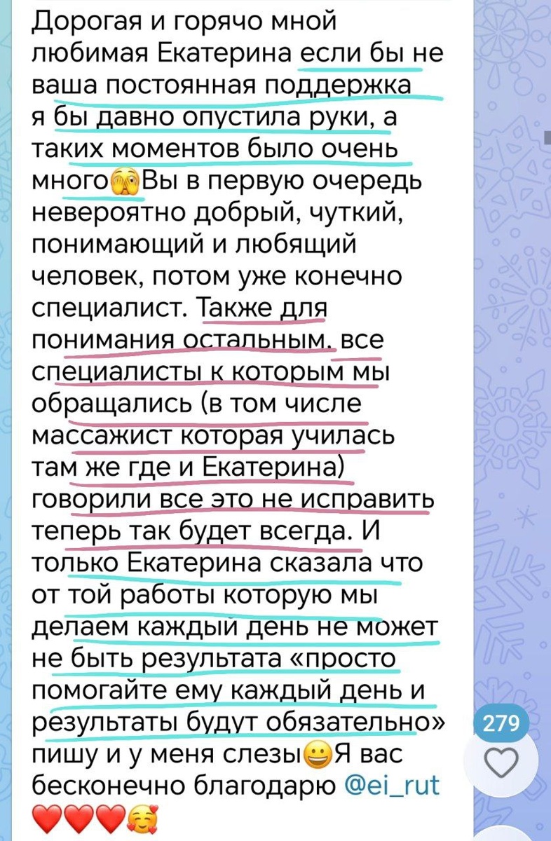 Работали с раненым партизаном более 6 месяцев, а до этого практически с рождения занимались симметрией предшествующих навыков Действительно казалось, что огромные усилия не имеют результов. Однако я точно знаю как работает тело, нервная система и любовь мамы Врачи навязывали диагнозы, которых на самом деле нет А мы справились 🤗 Сейчас продолжаем работу в клубе, периодически проводим тестирование и подбираем упражнения ⭐️Результаты до/после можно посмотреть здесь https://dzen.ru/media/rutschool/doposle-690077ac0840804fe048f98b ⭐️Индивидуальную консультацию в январе можно получить в рамках курса Позы контакта