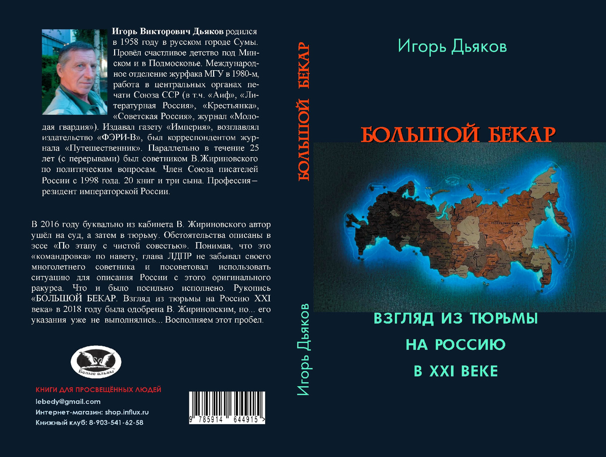 Не прошло и десяти лет, как вышла моя многострадальная книга. Не до презентаций, не до рецензий, - и времена, и аудитория "не те", что были в 80-х-90-х... Да и "уже не тот завод". В ней нет нытья, ибо, внезапно погруженный в тюремный ад, в очередной раз убедился, что мы живем в океане людского горя, нечелочеческой несправедливости и лжи. А потому решил, что происходящее - не беда, а своеобразная командировка, где судьбы и характеры человеческие открываются с предельной полнотой. И по старинной репортерской привычке взялся за карандаш... Написанное 8 лет назад, это свободное эссе не потеряло актуальности. И даже напротив: без фактора последующих мутных событий обрела своего рода чеканную форму. Частями текст давал на канале, но "в бумаге" - это, согласитесь, другое дело. Вот ее исходные данные: Дьяков И. В. Большой бекар. Взгляд из тюрьмы на Россию XXI века. На свободу с чистой совестью. – М.: Белые альвы, 2026. – 242 с. ISBN 978-5-91464-491-5 В 2016 году буквально из кабинета В. Жирино