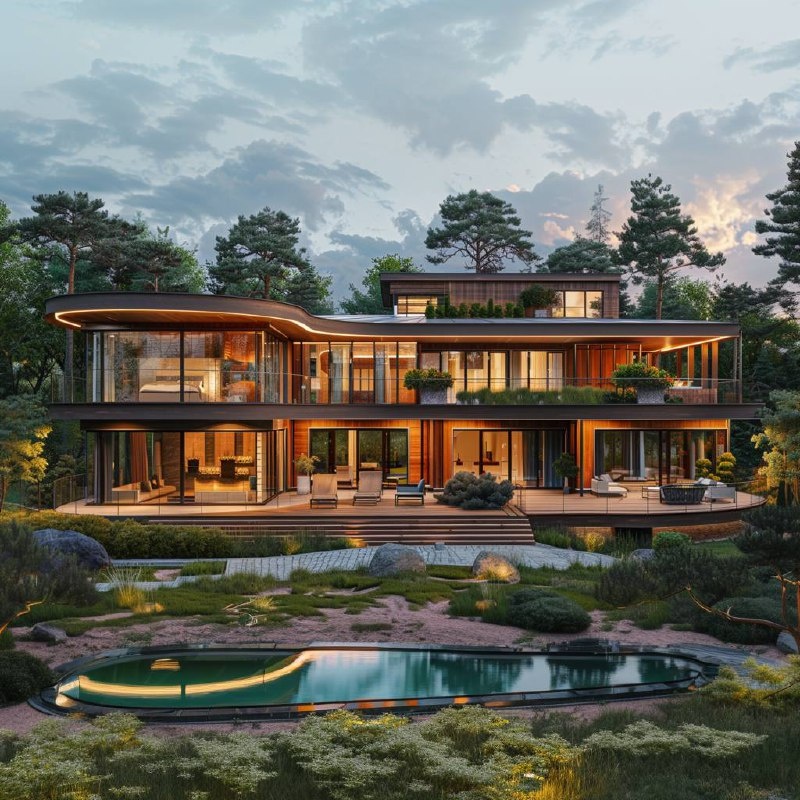 Этот проект — пример архитектуры, где пластичные линии, стекло и натуральные материалы образуют лёгкую, почти воздушную композицию. Дом словно парит над ландшафтом, открывая идеальные виды на сад и создавая ощущение абсолютной свободы. Характеристики Общая площадь: 380–600 м² Спальни: 4–8 Санузлы: 3–5 Террасы: широкие по периметру второго этажа и большая терраса первого уровня. Материал стен : дерево + металл + стекло. 🕊️Все детали расскажем лично пишите в комментариях или — свяжитесь с нами: resident-house.ru/contacts