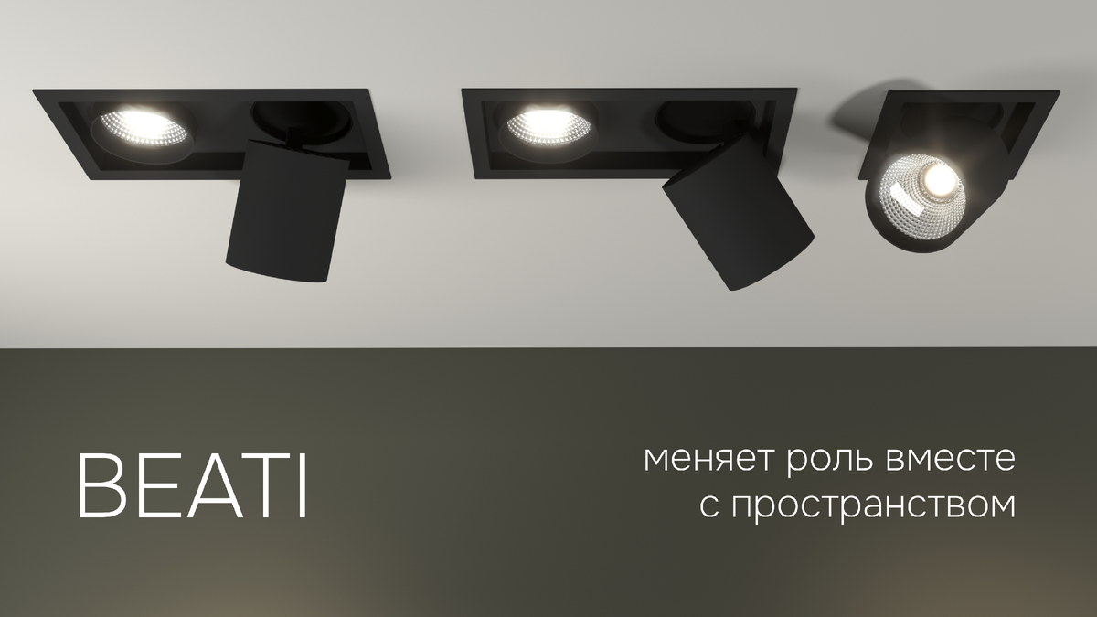 Функциональный и продуманный, BEATI сочетает в себе возможности прожектора и даунлайта в одном корпусе. Светильник выполнен во встроенном формате с выдвижной системой, которая позволяет использовать его как утопленный источник общего света или выдвигать для акцентного освещения. Это решение расширяет сценарии применения без изменения архитектуры потолка.