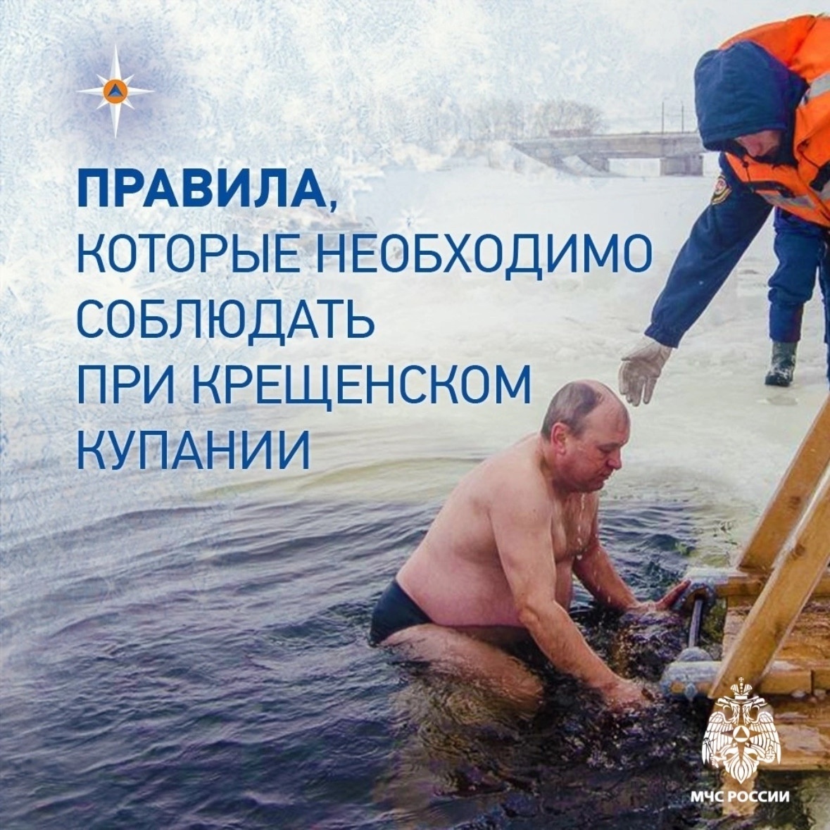 В ночь с 18 на 19 января православный мир отметит праздник Крещения Господня. Чтобы не омрачить праздник, купающимся необходимо соблюдать меры безопасности при погружении в холодную воду. Ещё раз обращаем ваше внимание на то, что крещенские купания необходимо проводить только в специально оборудованных для этого местах (иорданях) с соблюдением мер безопасности. Соблюдайте сами и напомните близким!