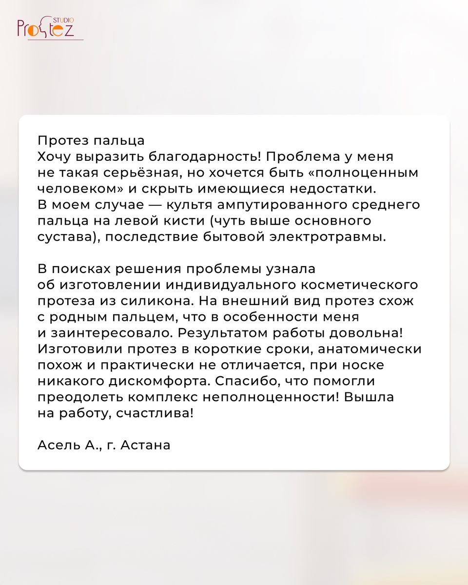 Мы очень ценим ваше мнение и поддержку! Благодаря вашим отзывам наша лаборатория становится лучше с каждым днем. В Protez Studio мы используем современные технологии и методы реабилитации, чтобы помочь людям вернуть радость полноценной жизни. В карусели собраны реальные отзывы, полные благодарности и удовлетворения от полученного результата. Благодарим за ваши теплые слова!