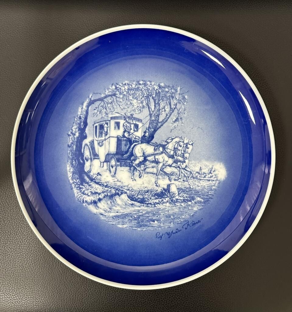 Настенная тарелка "Старая почтовая карета на Заксенберг" 1962-63 гг Настенная тарелка Теодор Кернер (Theodor Kärner) выпущенная на фабрике Lindner Porzellanmanufaktur (Кюпс, Бавария) "Старая почтовая карета на Заксенберг". Размер тарелки 250 мм, кобальт на фарфоре, крепление подвеса в ободе. Тарелка в хорошем коллекционном состоянии. За несколько лет до своей смерти Кернер, в тесном сотрудничестве с двоюродным братом, гравёром Карлом Найдхардтом, работал над серией почтовых карет, выполненных в кобальте и стальной гравюре на фарфоре. Allach Porzellan Manufaktur, 1962 Стоимость лота: 49 000,00 ₽ Подробнее на нашем сайте
