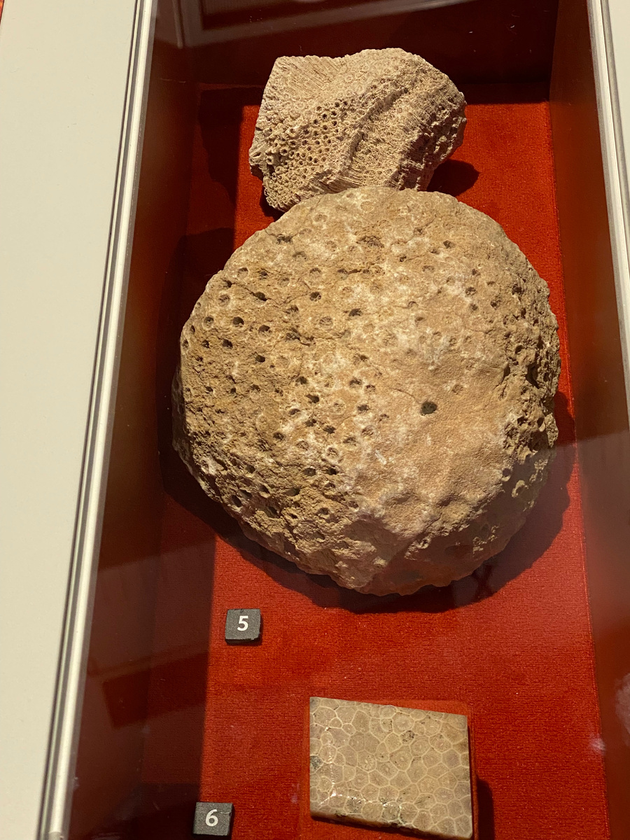 Коралл – это материал скелета колонии коралловых полипов, являющихся морскими беспозвоночными животными. Большие скопления кораллов формируют коралловые рифы и коралловые острова. Первые кораллы появились около 500 миллионов лет назад в кембрийском периоде. За миллионы лет эволюции кораллы адаптировались к различным условиям обитания и сформировали уникальные экосистемы. Коралловые рифы служат домом для тысяч видов рыб, моллюсков, ракообразных и других морских организмов. Известны свыше 6000 видов кораллов. Твёрдый карбонатный скелет некоторых из них используется как сырьё для изготовления ювелирных украшений. На выставке представлены образцы кораллов каменноугольного и мелового периодов из фондов ГБМТ, найденных в разных регионах России. Большое количество одиночных и колониальных форм кораллов можно увидеть в облицовке колонн стации «Красносельская».