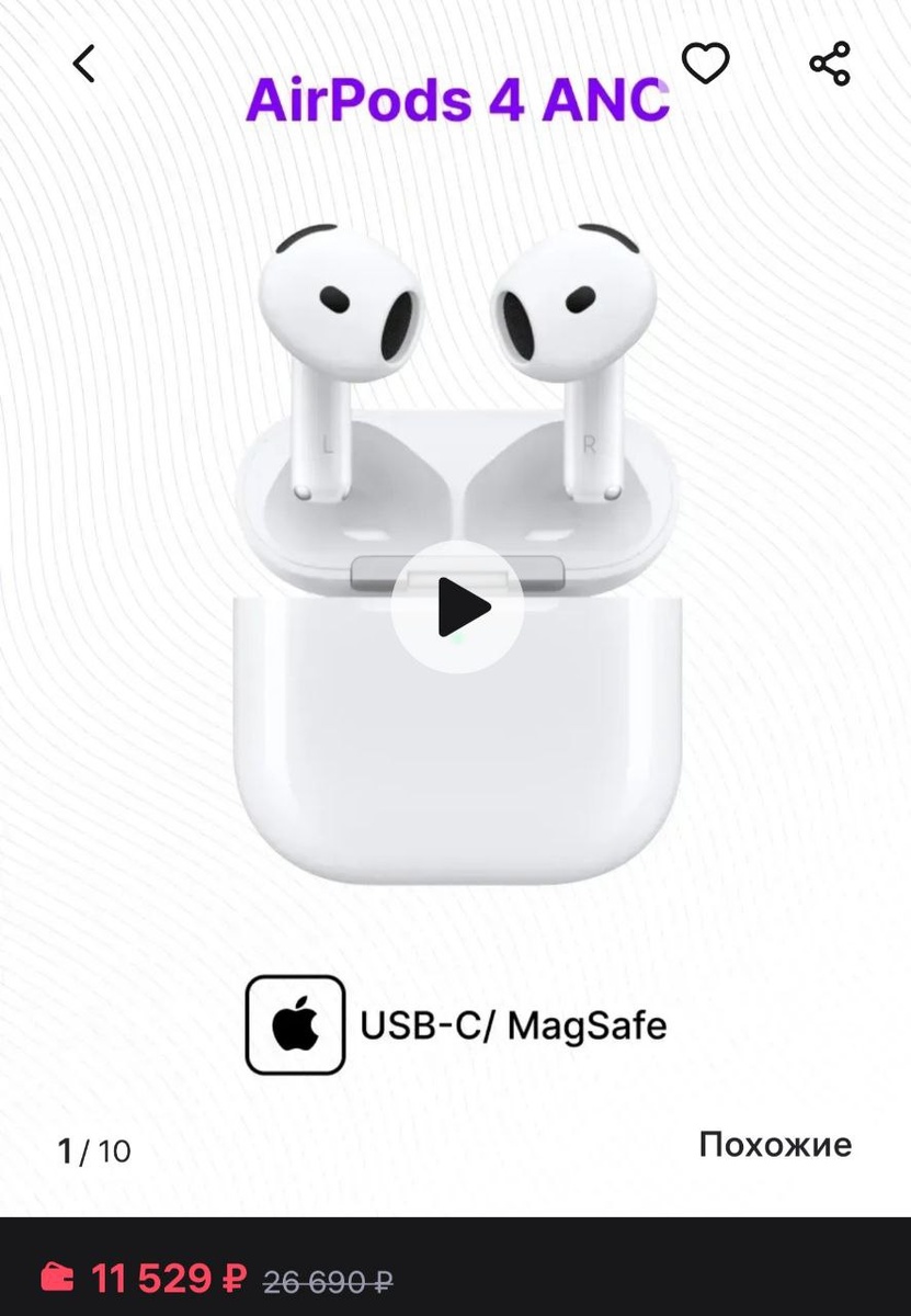 π’ΠΠ΅ΡΠΏΡΠΎΠ²ΠΎΠ΄Π½ΡΠ΅ Π½Π°ΡΡΠ½ΠΈΠΊΠΈ AirPods 4 ANC Apple - 11529Ρ (Π²Π± ΠΊΠ»ΡΠ± + ΠΌΠ°ΠΊΡΠΈΠΌΠ°Π»ΡΠ½ΡΠΉ ΠΊΠΎΡΠ΅Π»Π΅ΠΊ)