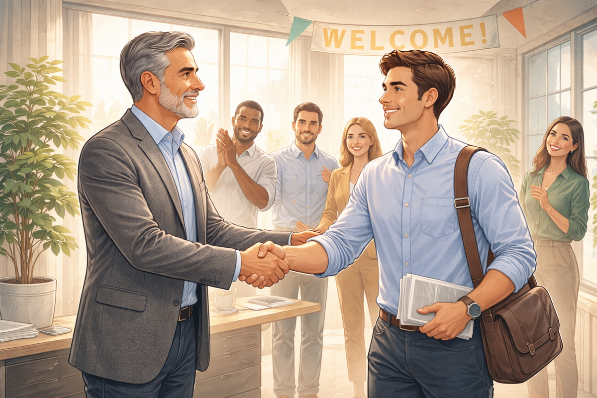 Онбординг — это первый системный шаг, который помогает новому сотруднику понять, куда он пришёл, зачем он здесь и как начать работать. Онбординг не равен адаптации и не включает профессиональное развитие — это чисто про ясность и комфорт первых дней. Без управляемого онбординга даже сильные специалисты: Онбординг нужен, чтобы сотрудник с первых часов понимал карту компании, людей и процессов, а также чувствовал себя частью команды. 1. Подготовка рабочего места: 2. Первое приветствие и экскурсия: 3. Ознакомление с пакетами документов: 4. Чёткий план первых нескольких дней: 5. Назначение наставника: Онбординг — это управляемый, структурированный процесс, который обеспечивает максимальную ясность для новичка: где он работает, что делает, с кем взаимодействует и куда обращаться. Это фундамент, на котором строится последующая адаптация и профессиональное включение в компанию.