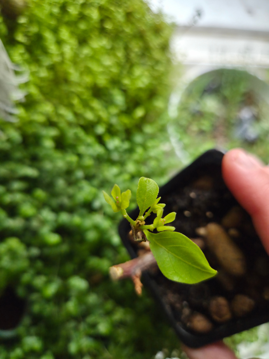 Показываю. Пусть будет коротко и наглядно. Я про бугенвиллею, но это может быть почти любое растение, которое... Ну вы и сами поймёте. А дело начиналось в самом конце ноября, вот так: Маленькая, слабенькая. И вообще выбраковка. Такое обычно выбрасывают, что я и собиралась тогда сделать. Т.к. на момент, когда я на это почти решилась, листьев не было вообще. Листики последние с тоненькой веточки отвалились. Все! И не было новых, может, недели две-три. Листьев не было, но выкидывание отложилось, т.к. мне вдруг стало сильно не до того. Не до растений. Конечно, поливала, но не более. А потом вдруг обнаружила на вроде бы "не жилец" вот эти бутоны! Конечно, был соблазн их оставить. Чтобы раскрасить серые будни. Но с большей вероятностью могло получиться, что вот примерно сейчас, или чуть раньше, посмотрев на цветение, мне всё же пришлось бы "утилизировать" растение, отдавшее последние силы цветению. Можно сказать, "его прощальный поклон". Срезала я тогда микроскопические бутоны поочередно. Сн