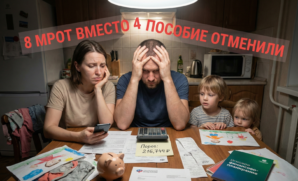 С 1 января 2026 года условия получения единого пособия ужесточились. Теперь каждый трудоспособный член семьи должен зарабатывать не меньше 8 МРОТ за год — 216 744 рубля. Что изменилось: В 2025 году требовалось 4 МРОТ (89 760 рублей). С 2026 года планка поднялась вдвое. Это значит, что многие семьи, которые получали пособие раньше, могут потерять поддержку. Единое пособие покрывает выплаты беременным, на детей до 3 лет, от 3 до 7 лет и от 8 до 17 лет. Среднедушевой доход семьи не должен превышать 1,5 прожиточного минимума в регионе. 12 правил воспитания, которые работают» (серия «Семейный компас», РИПОЛ РОСТ – это практическое руководство по превращению хаоса в общении и воспитании в понятную и лёгкую систему формирования сильной личности и надежного семейного «МЫ». В ней вы найдете: живые истории, советы, правила воспитания, проверенные на практике автором-мамой, чек-листы, игры и практикумы. Подписывайтесь на РИПОЛ РОСТ в VK, Telegram и Яндекс.Дзен — делимся полезной информацией для с