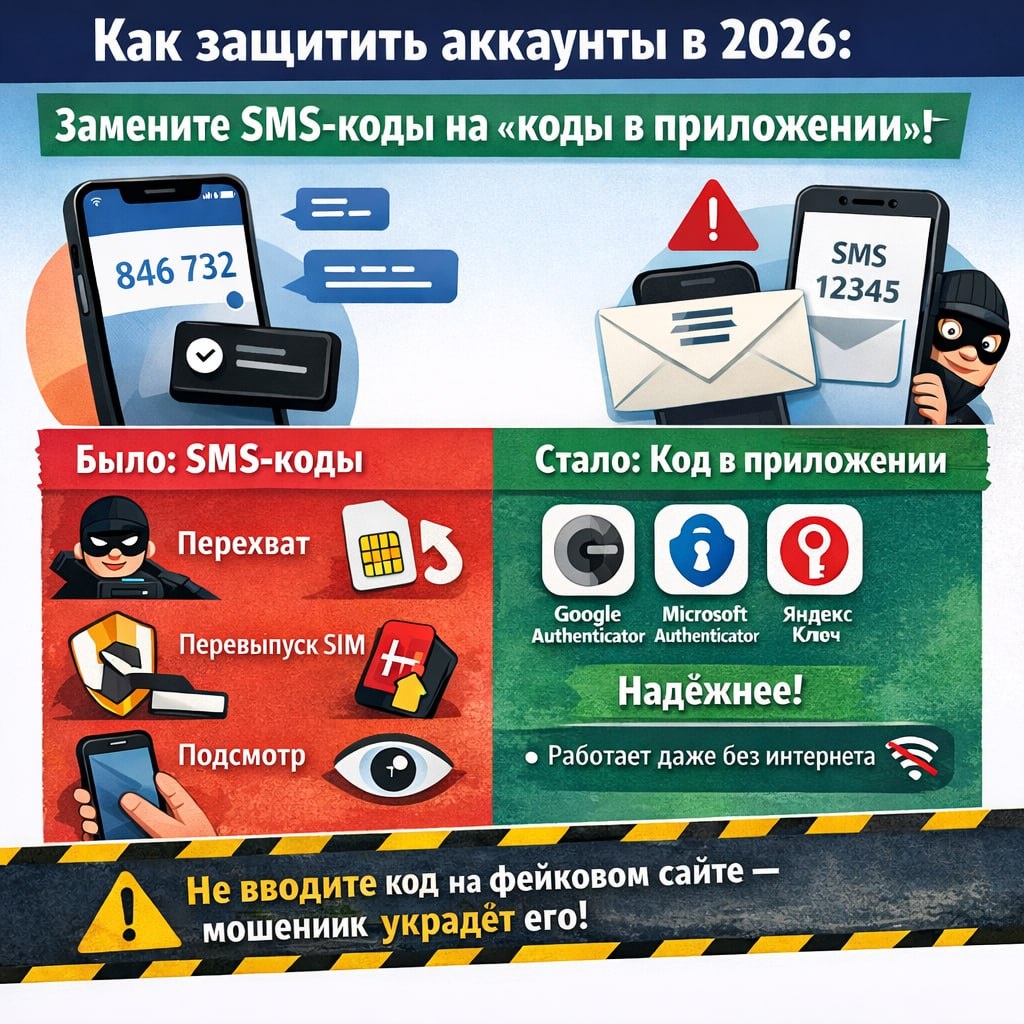 β Π‘Π°ΠΌΠ°Ρ ΡΠ°ΡΡΠ°Ρ Π·Π°ΡΠΈΡΠ° ΡΠ΅Π³ΠΎΠ΄Π½Ρ β ΠΊΠΎΠ΄ ΠΈΠ· SMS. Π ΡΠ°ΠΌΠ°Ρ ΡΠ°ΡΡΠ°Ρ Π°ΡΠ°ΠΊΠ° ΡΠΎΠΆΠ΅ β ΡΠΊΡΠ°ΡΡΡ ΠΈΠ»ΠΈ Π²ΡΠΌΠ°Π½ΠΈΡΡ ΡΡΠΎΡ ΠΊΠΎΠ΄. ΠΠΎΡΡΠΎΠΌΡ Π±Π°Π·ΠΎΠ²ΡΠΉ ΡΠ°Π³ Π±Π΅Π·ΠΎΠΏΠ°ΡΠ½ΠΎΡΡΠΈ Π½Π° 2026 Π³ΠΎΠ΄ ΠΏΡΠΎΡΡΠΎΠΉ: β