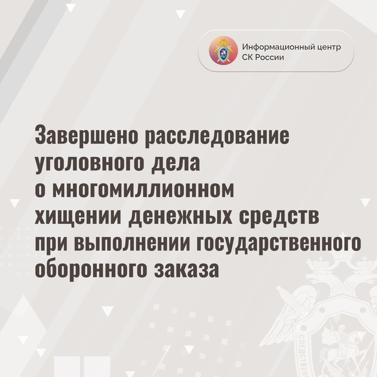 Завершено расследование уголовного дела о многомиллионном хищении денежных средств при выполнении государственного оборонного заказа