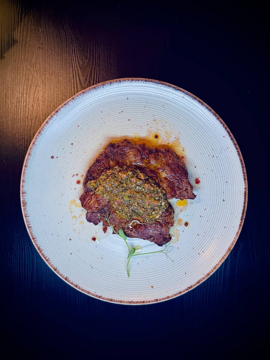 : Стейк Чак Ролл с соусом Чимичурри - 950₽😋 Поджаристый, с шоколадной корочкой и мраморной тающей сердцевиной. Пикантный, сочный вкус благородной говядины. Подаётся с соусом Чимичурри: мелко рубленная петрушка и кинза с дерзкими нотами чеснока, кимчи, кислого лимона.🍋 «Рекомендованная прожарка medium!»🥩 Ждём в гости к нам в бар. P.S. Ваши дровосеки🥰 Бронь столов: +7 (966) 312-54-98 Проспект Мира, 26, стр.1.