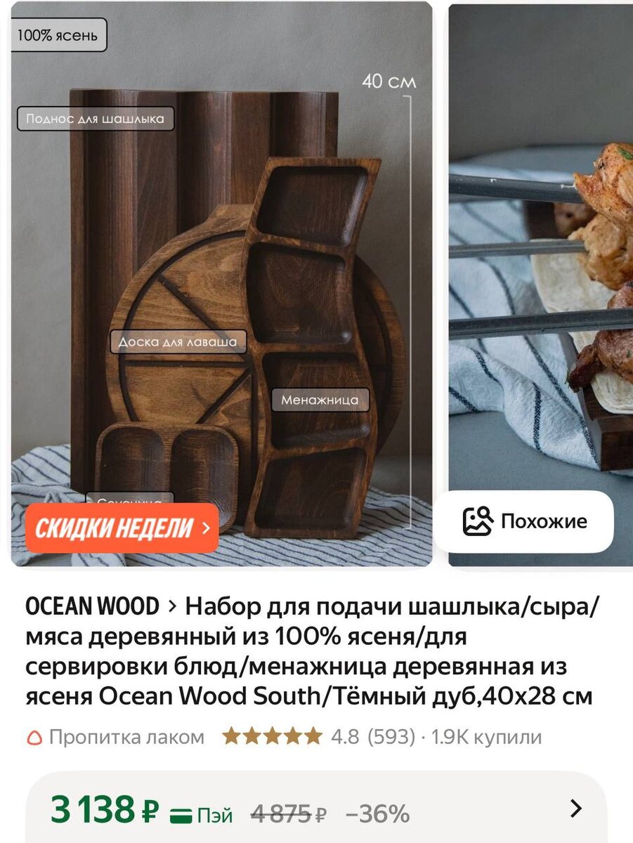 😔😃😔😴Набор для подачи шашлыка/сыра/мяса деревянный из 100% ясеня/для сервировки блюд/менажница деревянная из ясеня Ocean Wood