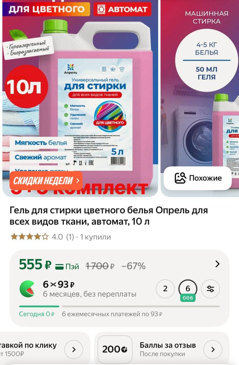 + 200 баллов за отзыв !!! Гель для стирки цветного белья Опрель для всех видов ткани, автомат, 10 л https://market.yandex.ru/cc/8YJhoU 💛 JANU55-AF — скидка 100₽ на один любой заказ от 5000₽ ✅ Канал по скидкам 🔣 Бот с промокодами