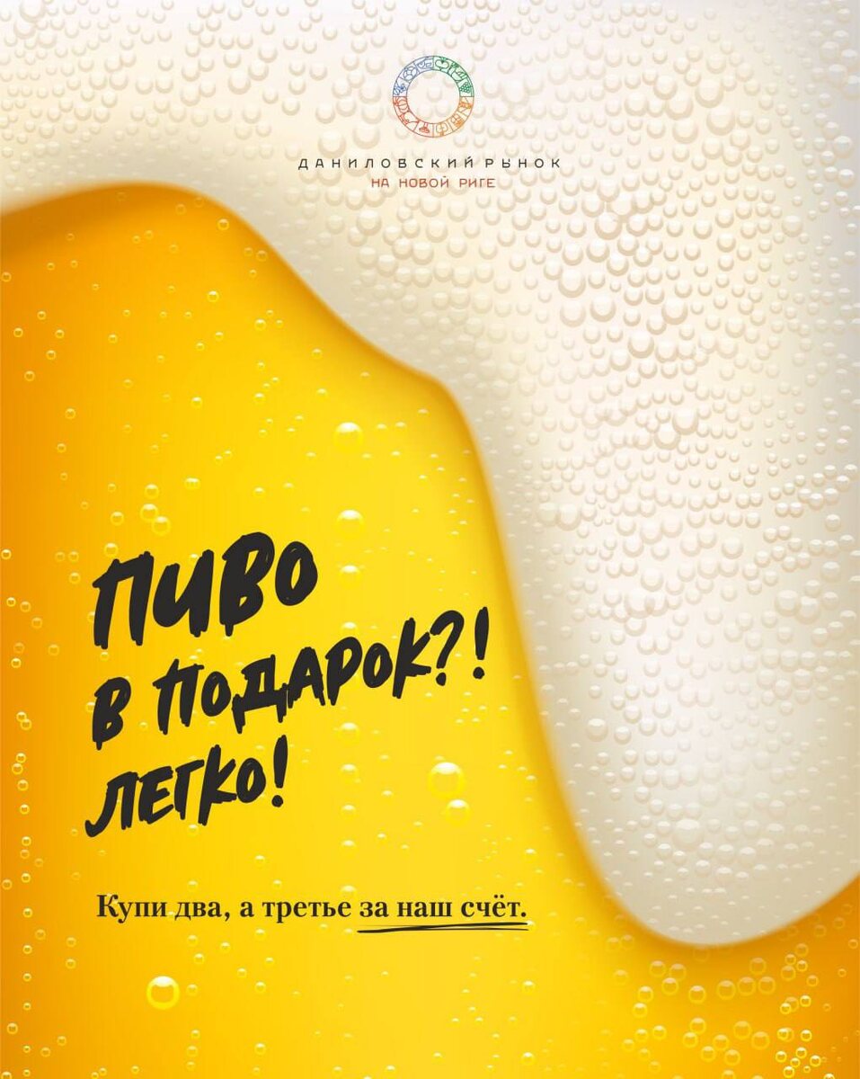 Теперь на Даниловском рынке каждую пятницу вы покупаете два пива, а третье получаете в подарок.