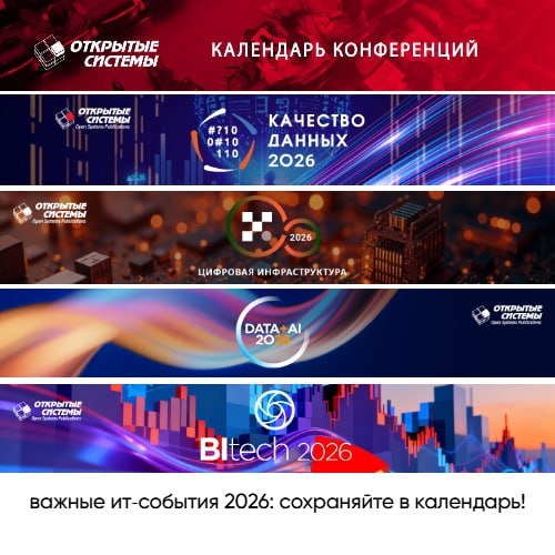 🗓 Сохраняйте в календарь важные события индустрии — впереди насыщенный год! «Качество данных 2026» Дата: 5 февраля 2026 года. О чём: главная всероссийская конференция по созданию и эксплуатации конвейеров гарантированного качества данных. «Цифровая инфраструктура 2026. Эра независимости» Дата: 4 марта 2026 года. О чём: реальные кейсы внедрения российских технологий. Узнайте, как повысить устойчивость бизнеса и ИТ‑зрелость с помощью ИИ. Форум «Данные+ИИ» Дата: 26 марта 2026 года. О чём: поиск скрытых резервов эффективности. Прагматичные решения для бизнеса и госуправления на стыке данных и ИИ. «Технологии бизнес‑аналитики 2026» (BItech 2026) Дата: 23 апреля 2026 года. О чём: освоение инструментов для принятия решений в реальном времени на основе достоверной аналитики. Не пропустите актуальные дискуссии и практические кейсы — регистрируйтесь и планируйте участие заранее!
