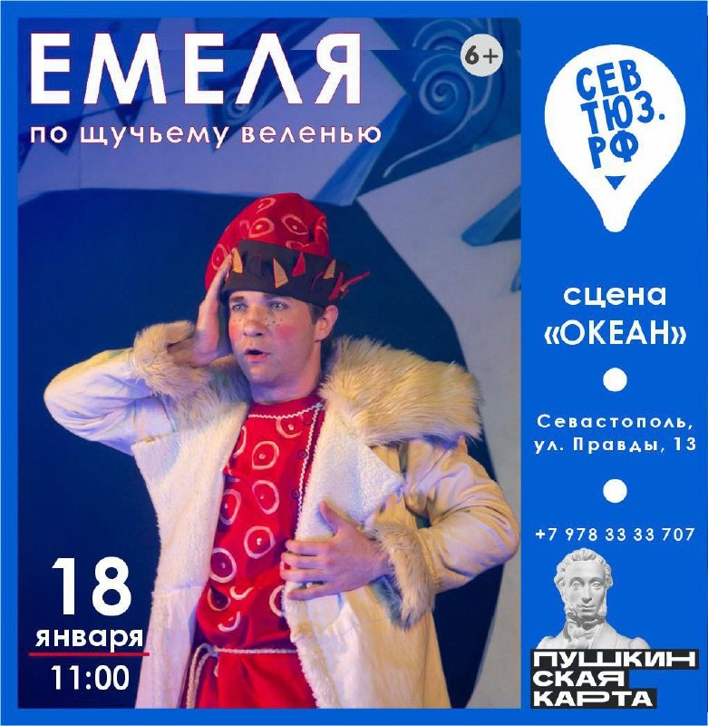 » 👉 Когда? 18 января в 11:00 👉 Где? Сцена «Океан» 👉 Билеты на сайте севтюз.рф или в кассах театра: просп. Гагарина, 16 и ул. Правды, 13. 👉 Принимаем оплату Пушкинской картой. 👉 Касса: +7 (978)333 37-07 Онлайн-касса 24/7 ✨Давай сходим, Севастополь | Читайте и смотрите нас в МАХ