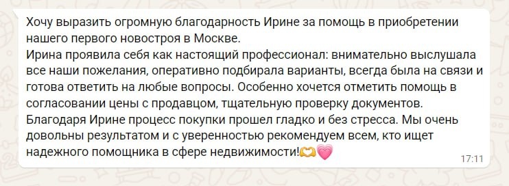 ! Особенно когда это ваша первая покупка🥹 Помогу купить выгодно и безопасно как первую квартиру, так и все последующие. И даже загородный дом! 🔐За консультацией писать по ссылке → https://t.me/irina_novostroi_msk #отзывы