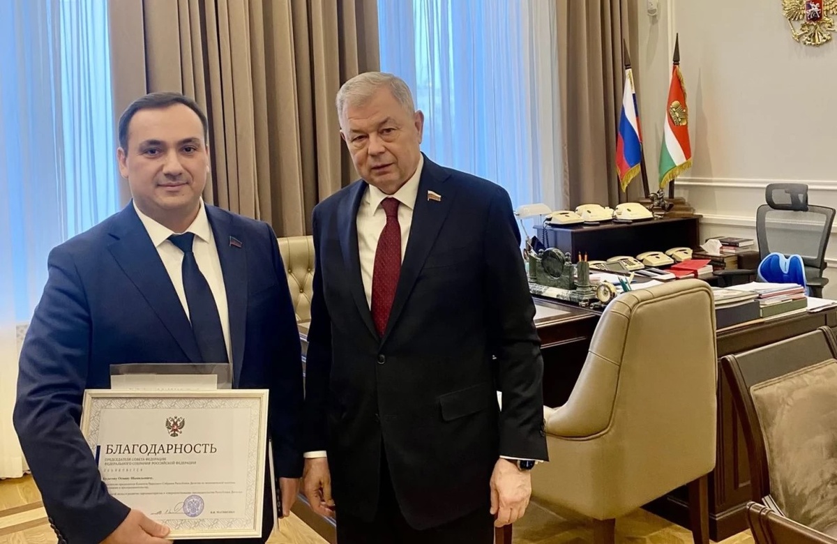 В Совете Федерации Федерального Собрания РФ в Москве состоялось торжественное вручение высокой федеральной награды. Благодарность Председателя Совета Федерации Валентины Ивановны Матвиенко была вручена руководителю Дагестанского отделения Российского экологического общества, заместителю председателя Комитета Народного Собрания Республики Дагестан по экономической политике, инвестициям и предпринимательству Осману Шамильевичу Булатову. Церемонию по поручению В.И. Матвиенко провел Председатель Комитета Совета Федерации по бюджету и финансовым рынкам А.Д. Артамонов. Награждение основано на соответствующем распоряжении, подписанном Председателем Совета Федерации. Осман Булатов удостоен этой награды за большой личный вклад в развитие и совершенствование законодательства Республики Дагестан. Тот факт, что церемония прошла в стенах верхней палаты российского парламента, подчеркивает признание его заслуг на самом высоком государственном уровне. Системная работа Османа Шамильевича в качестве за