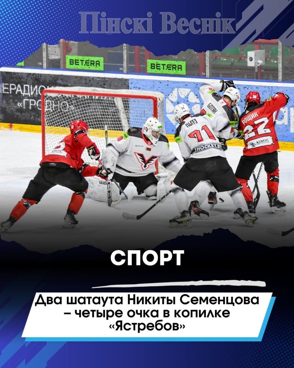 » ⏩13 и 14 января «Ястребы» провели две встречи с гродненским «Прогрессом». ⏩В первой игре мини-серии голкипер пинчан Никита Семенцов второй раз подряд оформил шатаут и принес победу своей команде – 2:0. ⏩Во втором матче вратарь «Ястребов» вновь оформил шатаут – 1:0. 👆Следующие игры состоятся также на выезде – «Ястребы» встретятся в Орше с местным «Локо». Матчи пройдут 19 и 20 января в 19.00 и 13.00 соответственно. Поддержим свою команду! @Пинский Вестник 📱Ютуб 📱ВК 📱ИНСТАГРАМ 📱ОК 📱ФЕЙСБУК 📱ТИК ТОК Прислать новость