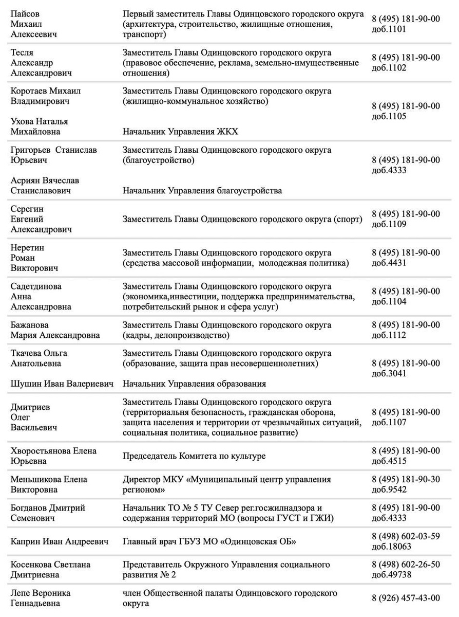 Ершово ул. Лермонтова, 3А, КСДЦ "Ершовское". Участие в мероприятии примут заместители главы, представители МКУ «МЦУР», Одинцовской областной больницы, министерства чистоты Московской области. Запись на личный приём ведётся в рабочие дни с 09.00 до 18.00 (понедельник-четверг), с 09.00 до 15.30 (пятница), обеденный перерыв: 13.00-13.45. В случае невозможности дозвониться по указанным телефонам - звонить по тел. 8-495-181-90-10, доб. 7512 или оставить заявку на обратный звонок по ссылке. ☑️@Администрация Одинцовского округа