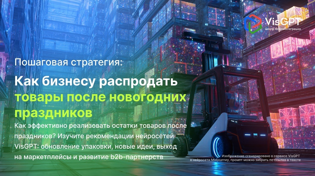 Как эффективно реализовать остатки товаров после новогодних праздников и сохранить доход? Предлагаем пошаговую стратегию с VisGPT: обновление упаковки, создание новых офферов, продвижение на маркетплейсах и сотрудничество с b2b-партнёрами. Задача распродажи сезонных товаров после новогодних праздников известна многим компаниям: спрос на такие позиции снижается, а стандартные скидки приводят к потере части прибыли. Решение — многоканальная стратегия, которую можно создать с помощью нейросетей VisGPT. Искусственный интеллект помогает бизнесу вывести из оборота неликвиды с выгодой и минимальным участием человеческих ресурсов. В материале рассмотрен пример такой стратегии для оптовой компании, выпускающей подарочные наборы для корпоративных клиентов, и предложены способы внедрения этого подхода для других бизнесов. Первый шаг — корректная формулировка задачи. Вместо вопроса "Как избавиться от остатков?", целесообразнее рассматривать "Как сделать сезонный товар универсальным и востребованны