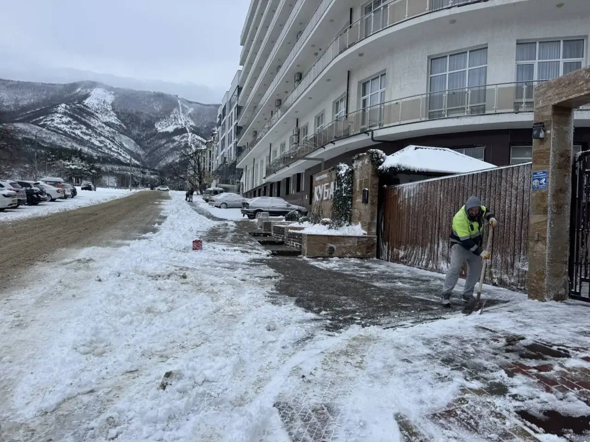 Жители Большого Геленджика активно подключились к уборке придомовых территорий после снегопада
