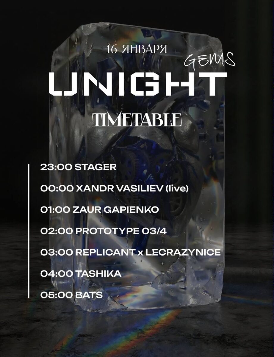 🌘 Вы пройдете путь от гипнотика, хард грува и прогрессив транса до более тяжёлого, индустриального и агрессивного звучания. Готовимся к настоящему погружению 💎 🎫 Билеты 📆 16 января, 23:00 — 06:00 📍 RNDM, Москва, Наставнический пер., 13/15с3