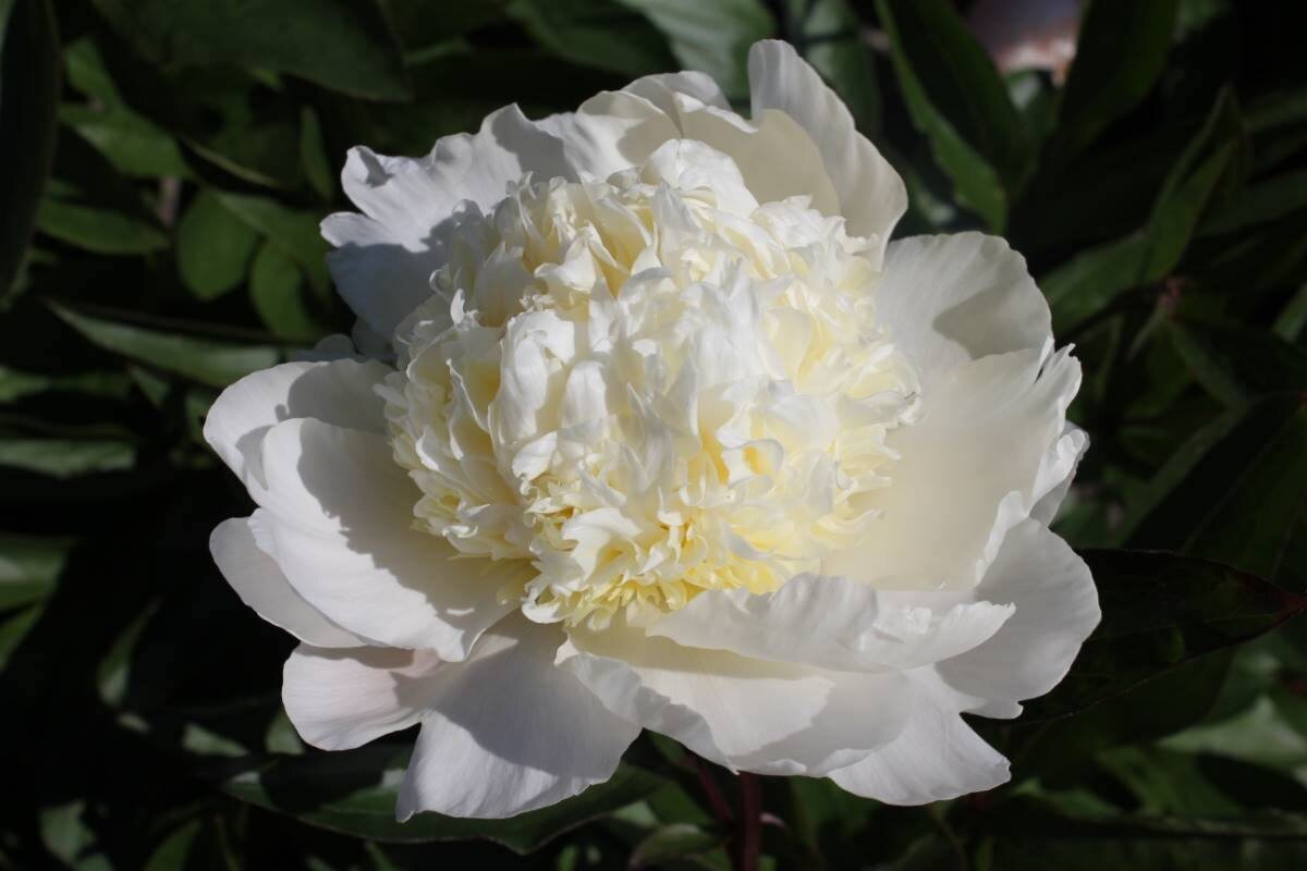) Золотая Медаль 🥇 2025 Gold Medal Peony Award recipient. Обладает хорошей плотностью и ароматом. Лактифлора среднего размера. Цвет нежно-кремовый. На некоторых лепестках могут быть красные пятнышки, но в целом они чистые. Много гладких бутонов. Защитные лепестки образуют «тарелку», в которой идеально располагаются внутренние лепестки. Весь цветок однородный и крепкий. Очень обильно цветет. Ароматный. Цветки плотные и могут использоваться для срезки. Во время цветения высота растения составляет 26 дюймов. Стебли крепкие и прямые, что делает растение привлекательным. Темно-зеленая листва сохраняет свой цвет в течение всего сезона.